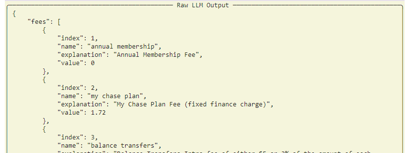 Let's step through how this works in practice. In our example, we'll build a simple Python application that extracts the key elements from a credit card service agreement. This includes the default interest rate, penalty rate, cash advance rate, balance transfer costs, foreign transaction fees, and other details.